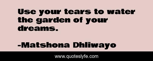 "Matshona Dhliwayo Quotes." Quoteslyfe.com, 2025. Sat. 06 Dec. 2025. <https://www.quoteslyfe.com/quote/Use-your-tears-to-water-the-garden-83640>.