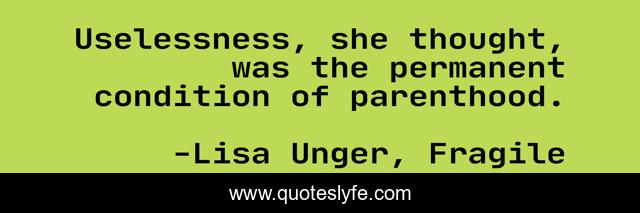 This page presents the quote "Uselessness, she thought, was the permanent condition of parenthood.". Author of this quote is Lisa Unger, Fragile. .