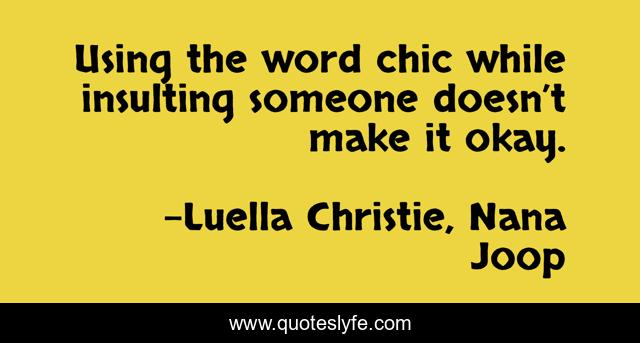 This page presents the quote "Using the word chic while insulting someone doesn’t make it okay.". Author of this quote is Luella Christie, Nana Joop. This quote is about advice, life, catcat,.