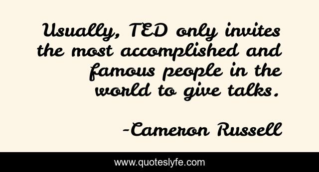 "Cameron Russell Quotes." Quoteslyfe.com, 2025. Sat. 06 Dec. 2025. <https://www.quoteslyfe.com/quote/Usually-TED-only-invites-the-most-accomplished-291560>.