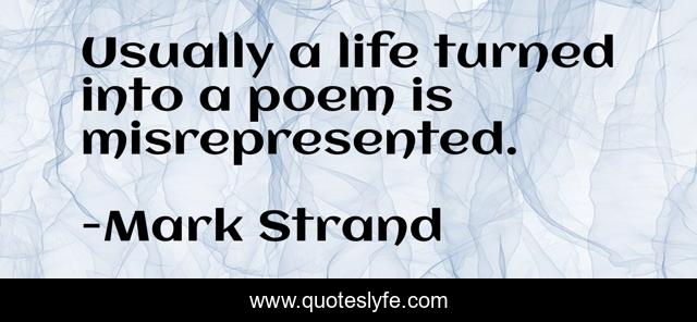 This page presents the quote "Usually a life turned into a poem is misrepresented.". Author of this quote is Mark Strand. This quote is about poem, life, turned,.