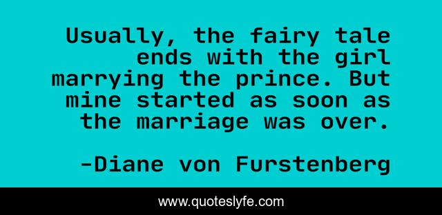 This page presents the quote "Usually, the fairy tale ends with the girl marrying the prince. But mine started as soon as the marriage was over.". Author of this quote is Diane von Furstenberg. This quote is about started, girl, fairy,.