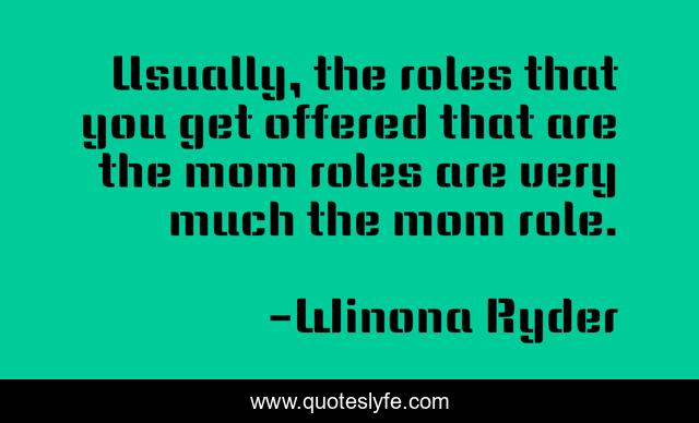 This page presents the quote "Usually, the roles that you get offered that are the mom roles are very much the mom role.". Author of this quote is Winona Ryder. This quote is about very, role,.