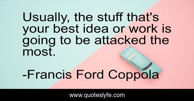 This page presents the quote "Usually, the stuff that's your best idea or work is going to be attacked the most.". Author of this quote is Francis Ford Coppola. This quote is about work, going, idea,.