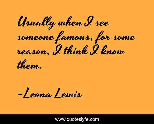 This page presents the quote "Usually when I see someone famous, for some reason, I think I know them.". Author of this quote is Leona Lewis. This quote is about see, think,.