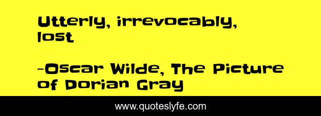 This page presents the quote "Utterly, irrevocably, lost". Author of this quote is Oscar Wilde, The Picture of Dorian Gray. This quote is about loss, forever, permanent, sadness, lost,.