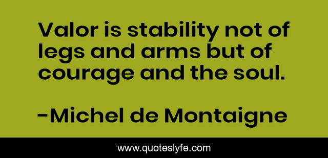 This page presents the quote "Valor is stability not of legs and arms but of courage and the soul.". Author of this quote is Michel de Montaigne. .