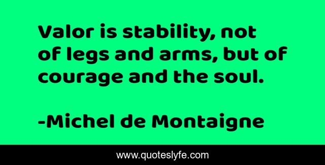 This page presents the quote "Valor is stability, not of legs and arms, but of courage and the soul.". Author of this quote is Michel de Montaigne. This quote is about stability, legs, soul,.
