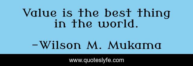 This page presents the quote "Value is the best thing in the world.". Author of this quote is Wilson M. Mukama. This quote is about world, best-thing, value,.