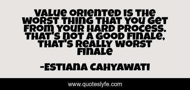 This page presents the quote "Value oriented is the worst thing that you get from your hard process. That's not a good finale, that's really worst finale". Author of this quote is Estiana Cahyawati. .