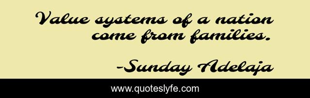 This page presents the quote "Value systems of a nation come from families.". Author of this quote is Sunday Adelaja. This quote is about families, value-system-nation, values,.