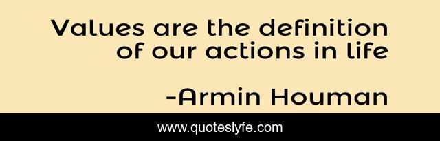 This page presents the quote "Values are the definition of our actions in life". Author of this quote is Armin Houman. This quote is about life, lifestyle, value-of-life, actions-over-words, actions-speak-louder-than-words, action-over-thought, value-in-a-person, value, values-and-beliefs,.