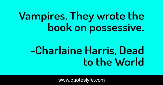 "Charlaine Harris, Dead to the World Quotes." Quoteslyfe.com, 2025. Mon. 08 Dec. 2025. <https://www.quoteslyfe.com/quote/Vampires-They-wrote-the-book-on-possessive-40341>.