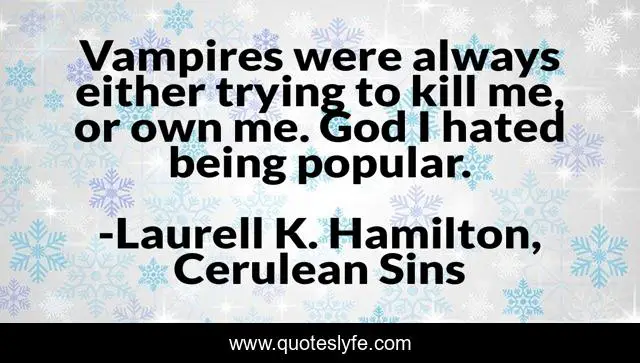 This page presents the quote "Vampires were always either trying to kill me, or own me. God I hated being popular.". Author of this quote is Laurell K. Hamilton, Cerulean Sins. This quote is about popular, sarcasm, vampires,.