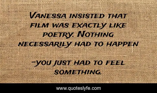 This page presents the quote "Vanessa insisted that film was exactly like poetry. Nothing necessarily had to happen". Author of this quote is you just had to feel something.. .