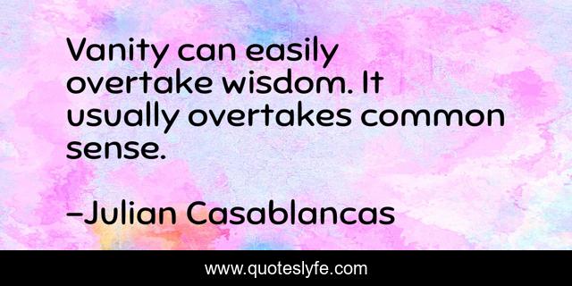 This page presents the quote "Vanity can easily overtake wisdom. It usually overtakes common sense.". Author of this quote is Julian Casablancas. This quote is about common sense, vanity, sense,.