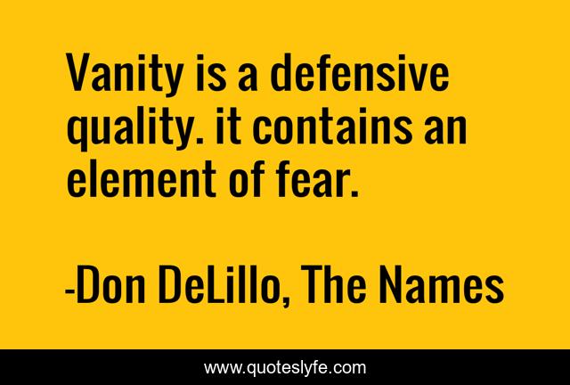 This page presents the quote "Vanity is a defensive quality. it contains an element of fear.". Author of this quote is Don DeLillo, The Names. .