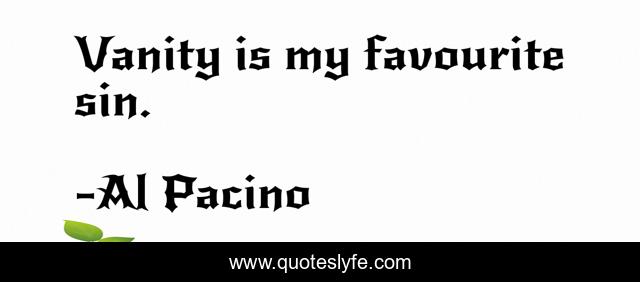 This page presents the quote "Vanity is my favourite sin.". Author of this quote is Al Pacino. This quote is about sin, vanity,.