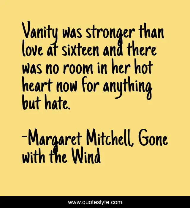 "Margaret Mitchell, Gone with the Wind Quotes." Quoteslyfe.com, 2025. Tue. 09 Dec. 2025. <https://www.quoteslyfe.com/quote/Vanity-was-stronger-than-love-at-sixteen-161289>.