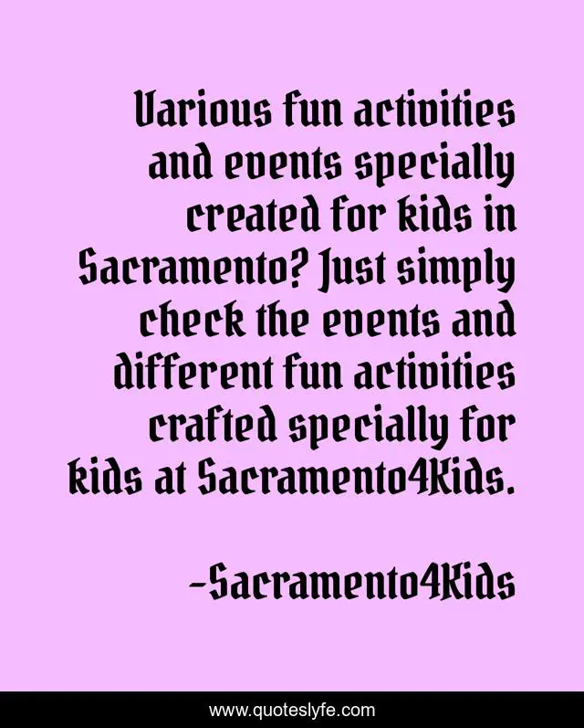 "Sacramento4Kids Quotes." Quoteslyfe.com, 2025. Fri. 05 Dec. 2025. <https://www.quoteslyfe.com/quote/Various-fun-activities-and-events-specially-created-237923>.