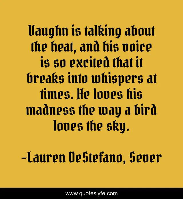 "Lauren DeStefano, Sever Quotes." Quoteslyfe.com, 2025. Mon. 08 Dec. 2025. <https://www.quoteslyfe.com/quote/Vaughn-is-talking-about-the-heat-and-221116>.