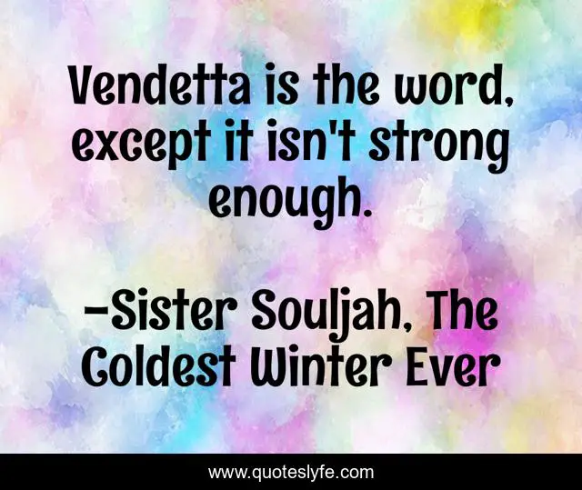 "Sister Souljah, The Coldest Winter Ever Quotes." Quoteslyfe.com, 2025. Fri. 05 Dec. 2025. <https://www.quoteslyfe.com/quote/Vendetta-is-the-word-except-it-isn-217670>.