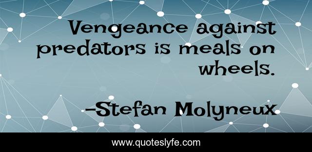 "Stefan Molyneux Quotes." Quoteslyfe.com, 2025. Fri. 05 Dec. 2025. <https://www.quoteslyfe.com/quote/Vengeance-against-predators-is-meals-on-wheels-103688>.