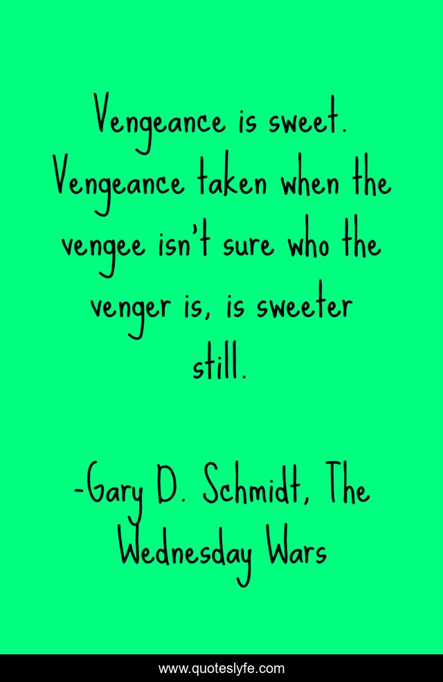 "Gary D. Schmidt, The Wednesday Wars Quotes." Quoteslyfe.com, 2025. Sat. 06 Dec. 2025. <https://www.quoteslyfe.com/quote/Vengeance-is-sweet-Vengeance-taken-when-the-7085>.