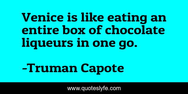 "Truman Capote Quotes." Quoteslyfe.com, 2025. Sat. 06 Dec. 2025. <https://www.quoteslyfe.com/quote/Venice-is-like-eating-an-entire-box-274476>.