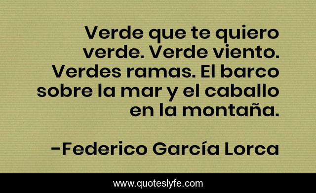 This page presents the quote "Verde que te quiero verde. Verde viento. Verdes ramas. El barco sobre la mar y el caballo en la montaña.". Author of this quote is Federico García Lorca. .