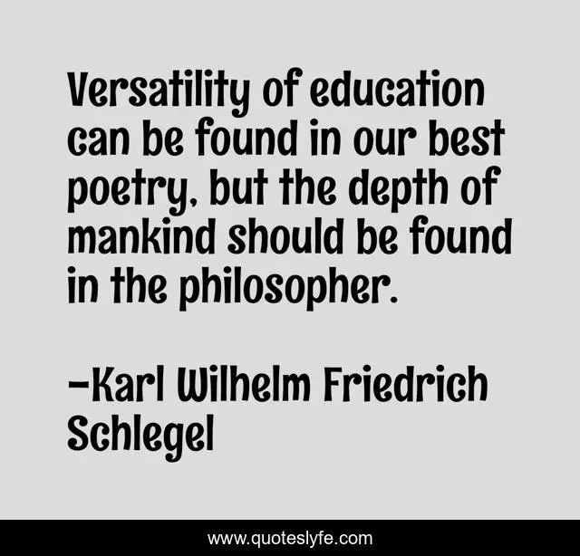 This page presents the quote "Versatility of education can be found in our best poetry, but the depth of mankind should be found in the philosopher.". Author of this quote is Karl Wilhelm Friedrich Schlegel. This quote is about poetry, best, mankind,.