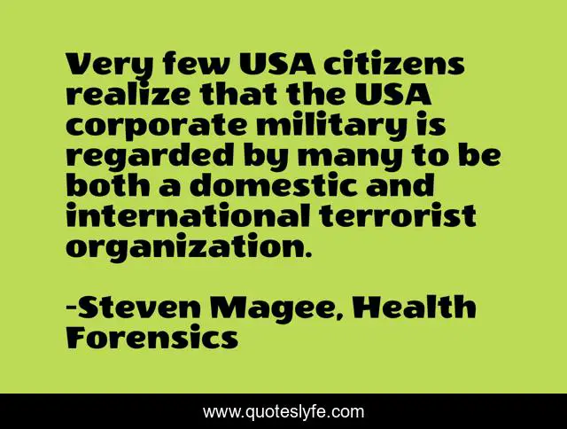 "Steven Magee, Health Forensics Quotes." Quoteslyfe.com, 2025. Fri. 05 Dec. 2025. <https://www.quoteslyfe.com/quote/Very-few-USA-citizens-realize-that-the-237065>.
