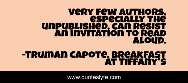 This page presents the quote "Very few authors, especially the unpublished, can resist an invitation to read aloud.". Author of this quote is Truman Capote, Breakfast at Tiffany's. .