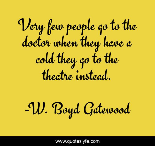 This page presents the quote "Very few people go to the doctor when they have a cold they go to the theatre instead.". Author of this quote is W. Boyd Gatewood. This quote is about acting, theatre,.