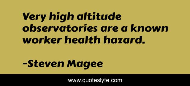 This page presents the quote "Very high altitude observatories are a known worker health hazard.". Author of this quote is Steven Magee. This quote is about very, altitude, worker, hazard, high, osha, health, known, observatories,.
