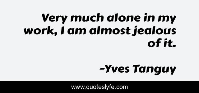 This page presents the quote "Very much alone in my work, I am almost jealous of it.". Author of this quote is Yves Tanguy. This quote is about jealous, work,.