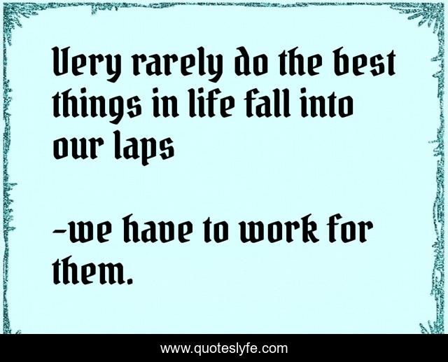 This page presents the quote "Very rarely do the best things in life fall into our laps". Author of this quote is we have to work for them.. .