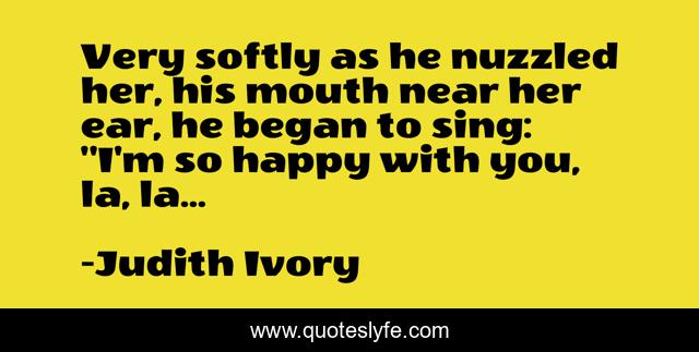 This page presents the quote "Very softly as he nuzzled her, his mouth near her ear, he began to sing: "I'm so happy with you, la, la...". Author of this quote is Judith Ivory. .