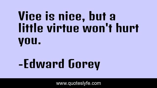 This page presents the quote "Vice is nice, but a little virtue won't hurt you.". Author of this quote is Edward Gorey. This quote is about virtue, morals, vice,.