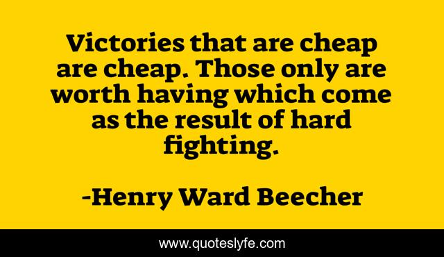 This page presents the quote "Victories that are cheap are cheap. Those only are worth having which come as the result of hard fighting.". Author of this quote is Henry Ward Beecher. .