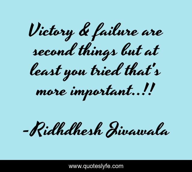 This page presents the quote "Victory & failure are second things but at least you tried that's more important..!!". Author of this quote is Ridhdhesh Jivawala. This quote is about failure, life, effort, victory, success,.