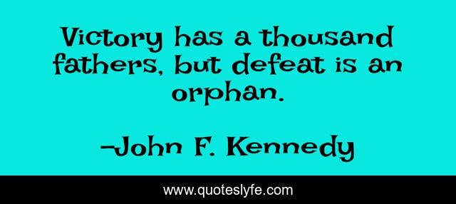 This page presents the quote "Victory has a thousand fathers, but defeat is an orphan.". Author of this quote is John F. Kennedy. This quote is about orphan, victory, defeat,.