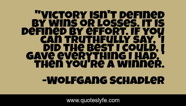 This page presents the quote ""Victory isn't defined by wins or losses. It is defined by effort. If you can truthfully say, 'I did the best I could, I gave everything I had, ' then you're a winner.". Author of this quote is Wolfgang Schadler. This quote is about life, victory,.