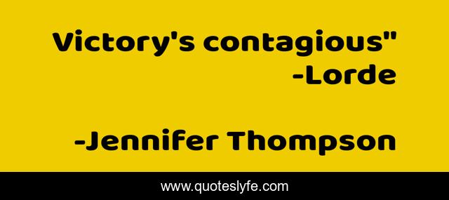 This page presents the quote "Victory's contagious" -Lorde". Author of this quote is Jennifer Thompson. This quote is about love, determination, inspirational, enthusiasm, affection, songs,.
