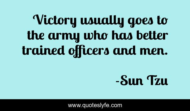 This page presents the quote "Victory usually goes to the army who has better trained officers and men.". Author of this quote is Sun Tzu. This quote is about better, victory, army,.