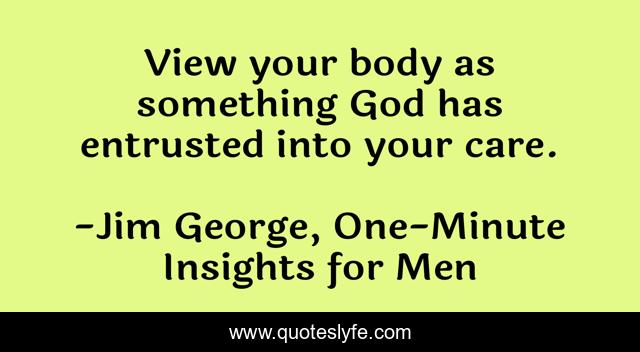 This page presents the quote "View your body as something God has entrusted into your care.". Author of this quote is Jim George, One-Minute Insights for Men. This quote is about body, jim-george, god, men, christian-living, care,.