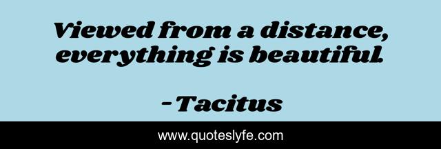 "Tacitus Quotes." Quoteslyfe.com, 2025. Fri. 05 Dec. 2025. <https://www.quoteslyfe.com/quote/Viewed-from-a-distance-everything-is-beautiful-165153>.