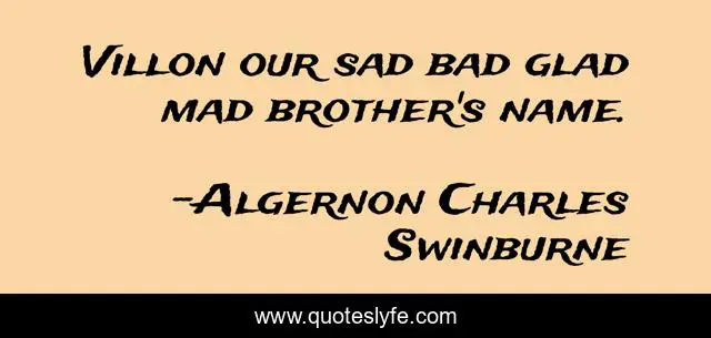 "Algernon Charles Swinburne Quotes." Quoteslyfe.com, 2025. Sat. 06 Dec. 2025. <https://www.quoteslyfe.com/quote/Villon-our-sad-bad-glad-mad-brother-272987>.