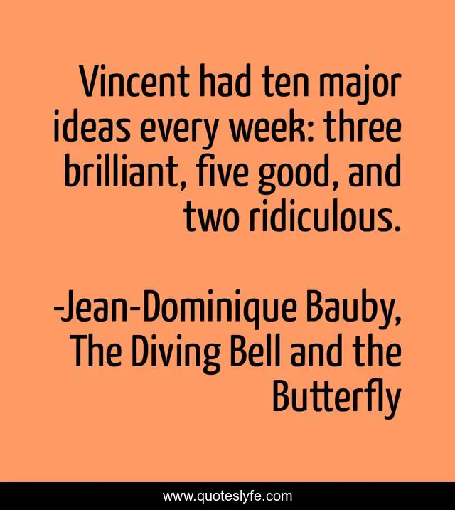 "Jean-Dominique Bauby, The Diving Bell and the Butterfly Quotes." Quoteslyfe.com, 2025. Mon. 08 Dec. 2025. <https://www.quoteslyfe.com/quote/Vincent-had-ten-major-ideas-every-week-205265>.