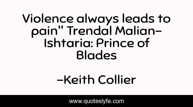 This page presents the quote "Violence always leads to pain" Trendal Malian- Ishtaria: Prince of Blades". Author of this quote is Keith Collier. This quote is about malian, blade, tram, series, ishtaria, sorcery, seller, fantasy, book,.